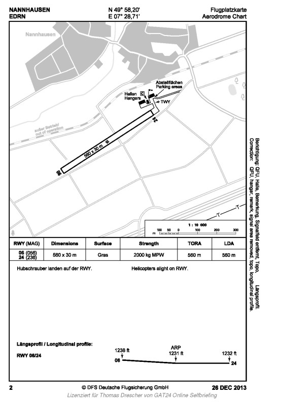 RWYS 06/24 560 x 30 m, Gras, MTOW [kg]: 2000 RWY 06 QFU 056°, TORA 560 m, LDA 560 m